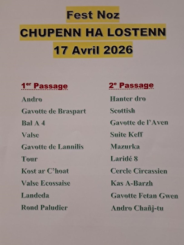 Avant une longue coupure, pour cause de vacances et de jours fériés, danseurs et musiciens se sont retrouvés à l'occasion un fest noz convivial, animé par le groupe Maligorn. Encore un bon moment d'échange et de partage, autour d'un verre de cidre !