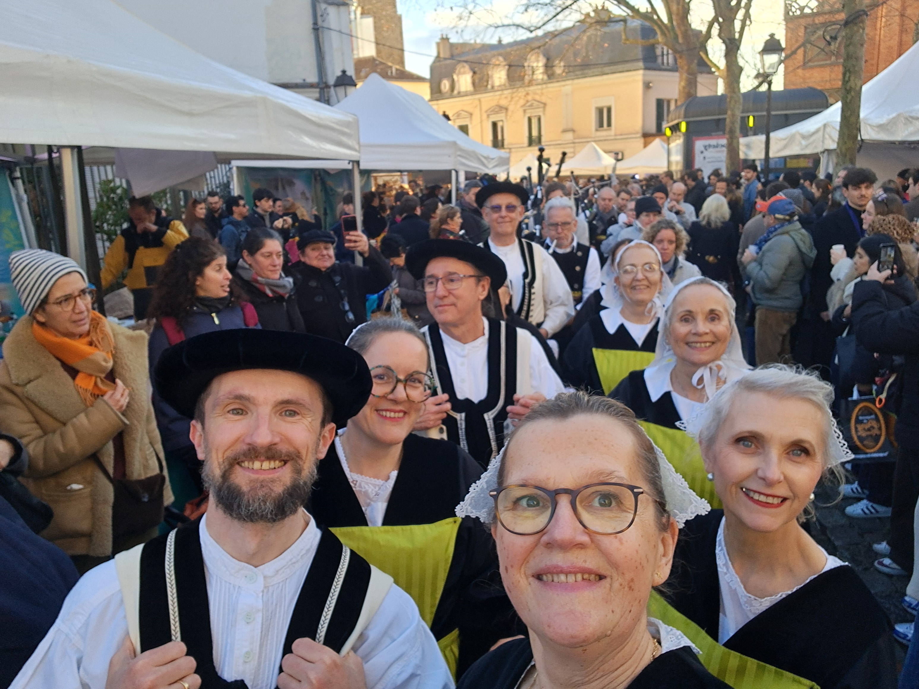 A l'occasion de la 20ème Fête de la coquille Saint-Jacques, le quartier des Abbesses a vibré au son des cornemuses, des bombardes du bagad Pariz et des bottines des danseurs du groupe Chupenn ha Lostenn d'Ermont et du cercle de St-Quentin-en-Yvelines ... Autour d'un marché typique, proposant coquilles et autres spécialités gastronomiques bretonnes, défilés et démonstrations de danses se sont enchaînés toute la journée sous un beau ciel bleu!